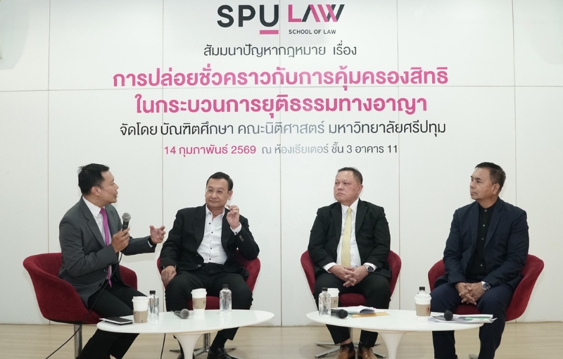 คณะนิติศาสตร์ มหาวิทยาลัยศรีปทุม (SPU) จัดโครงการสัมมนาวิชาการด้านกฎหมาย ในหัวข้อ “การปล่อยชั่วคราวกับการคุ้มครองสิทธิในกระบวนการยุติธรรมทางอาญา” เพื่อเปิดพื้นที่แลกเปลี่ยนองค์ความรู้และมุมมองทางวิชาการเกี่ยวกับประเด็นสำคัญในกระบวนการยุติธรรมทางอาญา โดยเนื้อหาการสัมมนาได้เจาะลึกตั้งแต่หลักการ สันนิษฐานไว้ก่อนว่าเป็นผู้บริสุทธิ์ สิทธิขั้นพื้นฐานของผู้ต้องหา ตลอดจนบทบาทและดุลพินิจของศาลและพนักงานสอบสวนในการพิจารณาอนุญาตให้ปล่อยชั่วคราว ซึ่งเป็นกลไกสำคัญในการคุ้มครองสิทธิและเสรีภาพของบุคคลตามหลักนิติธรรม ณ ห้องเธียร์เตอร์ อาคาร 11 ชั้น 3 มหาวิทยาลัยศรีปทุม กรุงเทพฯ เมื่อวันที่ 14 กุมภาพันธ์ 2569