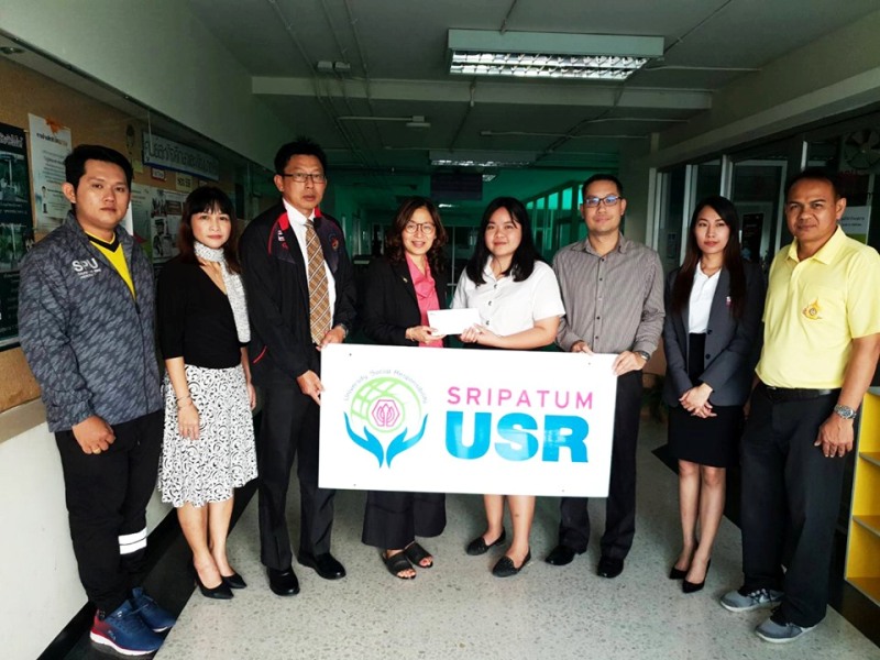 ผศ.ดร.จรรยา พุคยาภรณ์ รองอธิการบดี มหาวิทยาลัยศรีปทุม และประธานผู้ก่อตั้ง SRIPATUM USR มอบเงินช่วยเหลือจำนวนหนึ่ง แก่ นางสาวจิราพร แก่นการ นักศึกษาคณะบัญชี มหาวิทยาลัยศรีปทุม ด้วยความรักและห่วงใย เพื่อเป็นขวัญและกำลังใจในการต่อสู้ปัญหาจากครอบครัวประสบอุทกภัยน้ำท่วมบ้านอย่างหนักในเขตพื้นที่จังหวัดอุบลราชธานีที่ผ่านมา ณ อาคารกิจกรรมนักศึกษา มหาวิทยาลัยศรีปทุม กทม.(บางเขน)