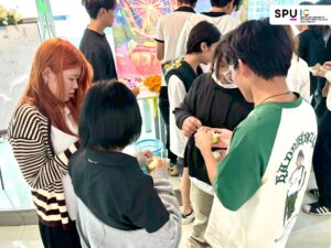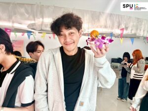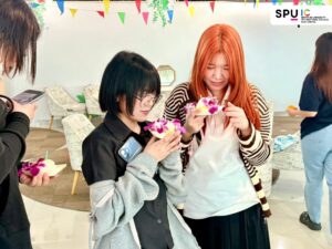 Held at SPUIC Student Lounge, the event invited over 50 Thai and international students to participate in crafting eco-friendly “kratongs.” Emphasizing the use of natural, biodegradable materials, the designs were not only symbolic but also reflected themes of gratitude, renewal, and ecological responsibility. Students also collaborated to raise awareness about the water pollution challenges associated with traditional Loy Kratong practices.